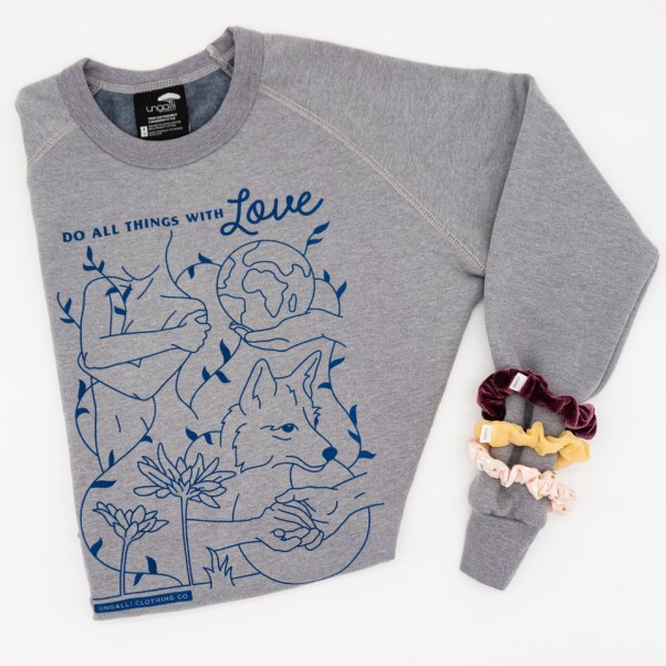 Show Mother Earth some love this Valentine’s Day! This Ungalli Clothing Co unisex sweatshirt is made from 12 recycled plastic bottles! The Ungalli gals explain that “all too often, we get so caught up in the daily grind that we fail to see the beauty that surrounds us”. This newly designed sweatshirt is a reminder to be present, live in the moment, and do all things with love.